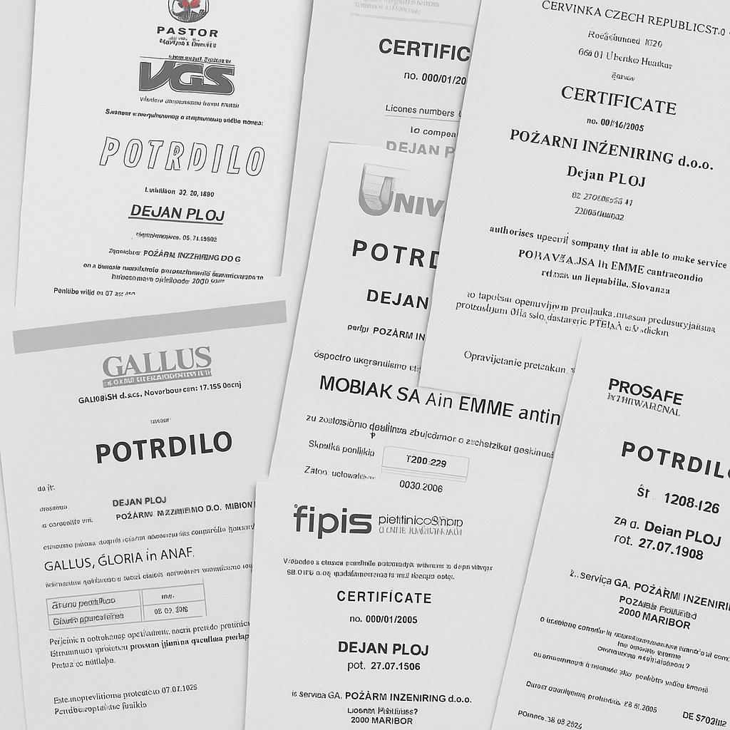 Vsak certifikat in potrdilo potrjuje našo zavezanost k odličnosti in odgovornosti do strank.